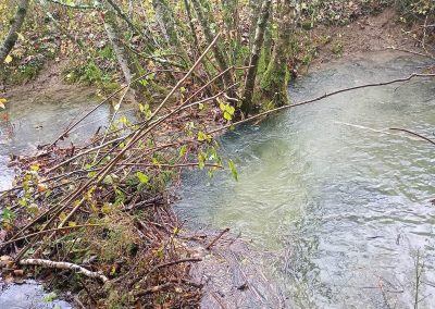 🦫 L’implantation d’un complexe d’ouvrages comprenant des ouvrages castor-mimétiques et des embâcles fixés en berge.